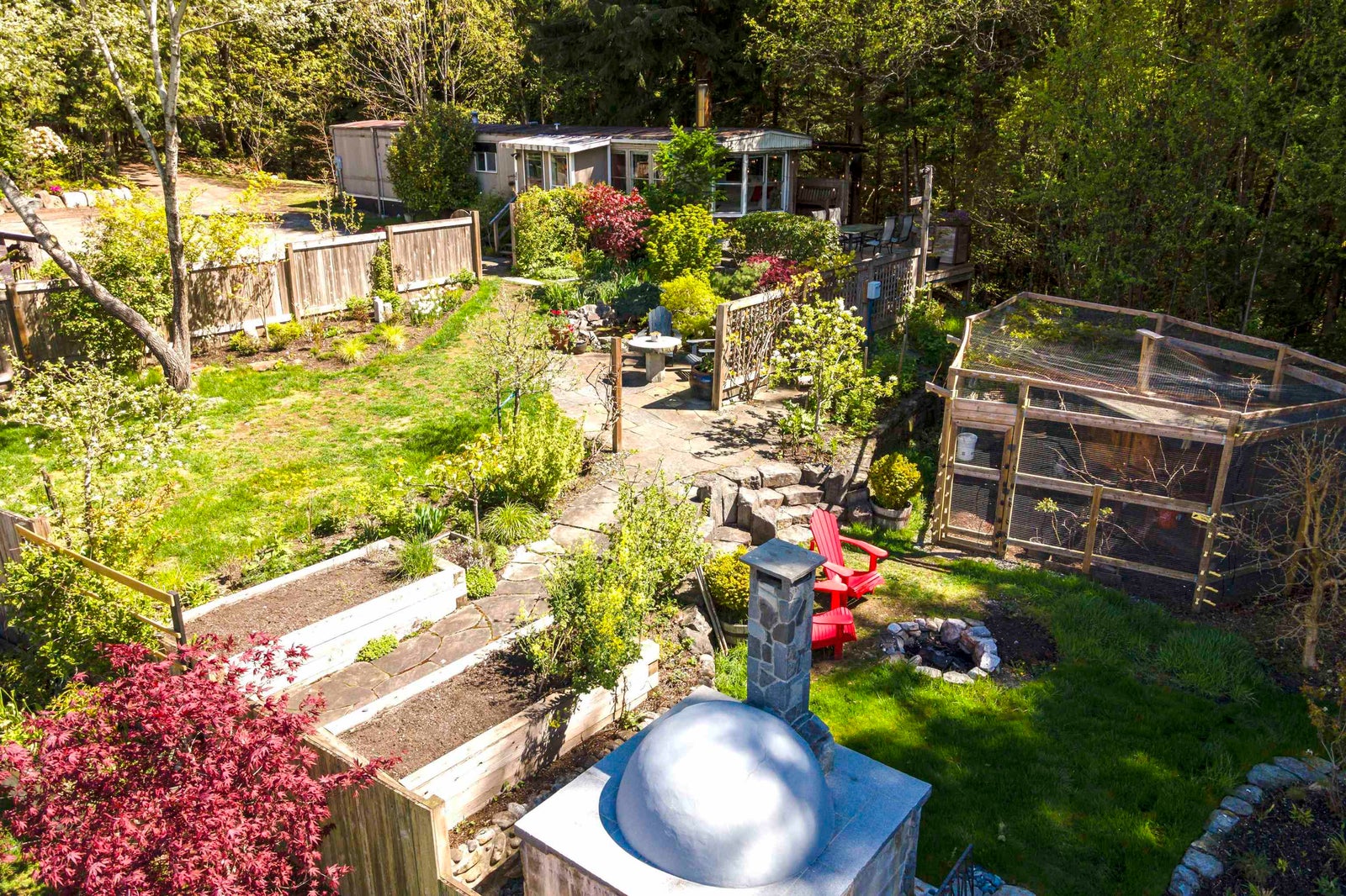 Discover your slice of paradise on this spacious 14,374 sq ft west-facing lot with stunning views of Howe Sound. Nestled beside the soothing sounds of Britannia Creek, this private oasis features lush gardens, a tranquil pond, fruit trees, a chicken coop, and an outdoor pizza oven/fireplace—ideal for entertaining. Live comfortably in the 3-bed, 1-bath mobile home while you build your 3,200 sq ft dream home (plans with suite available). With only one neighbor, ample parking, and unforgettable sunsets, this is a rare chance to create your coastal retreat. Britannia Beach is growing, with a revitalization project bringing a daycare, grocery store, and pub.