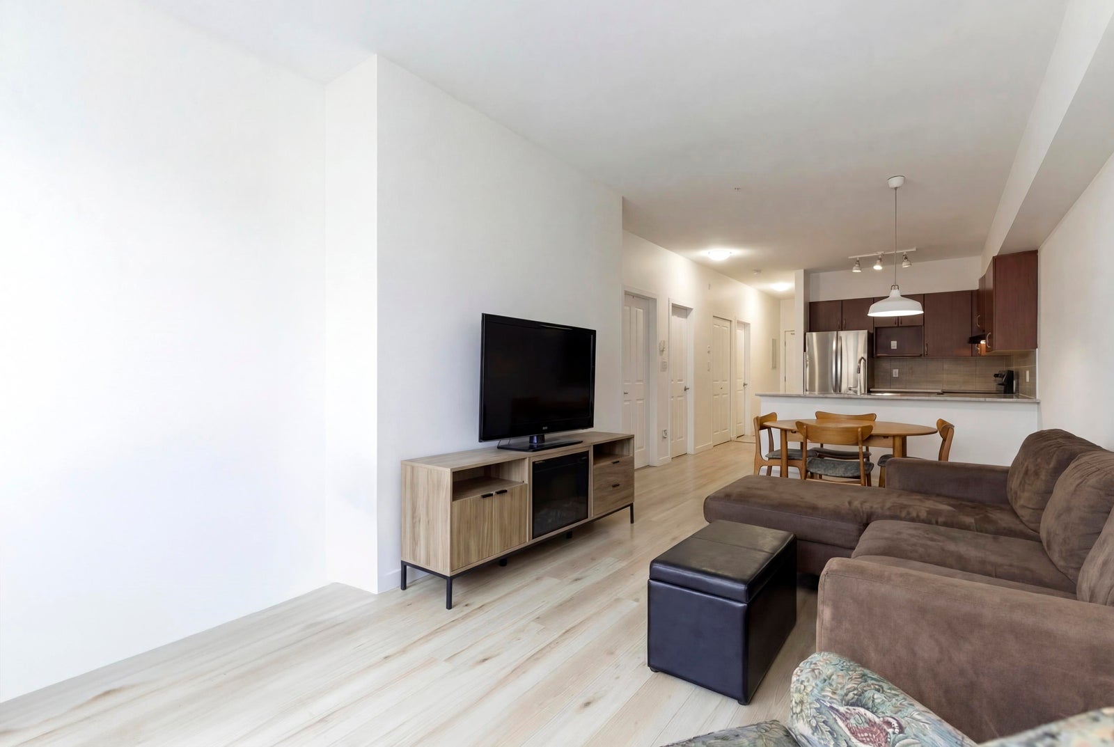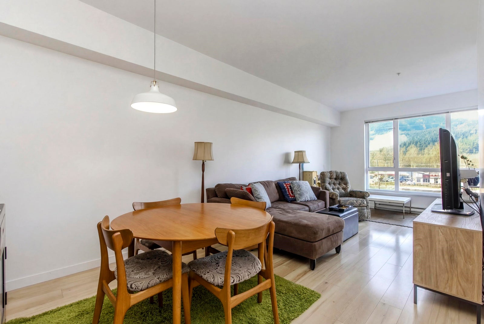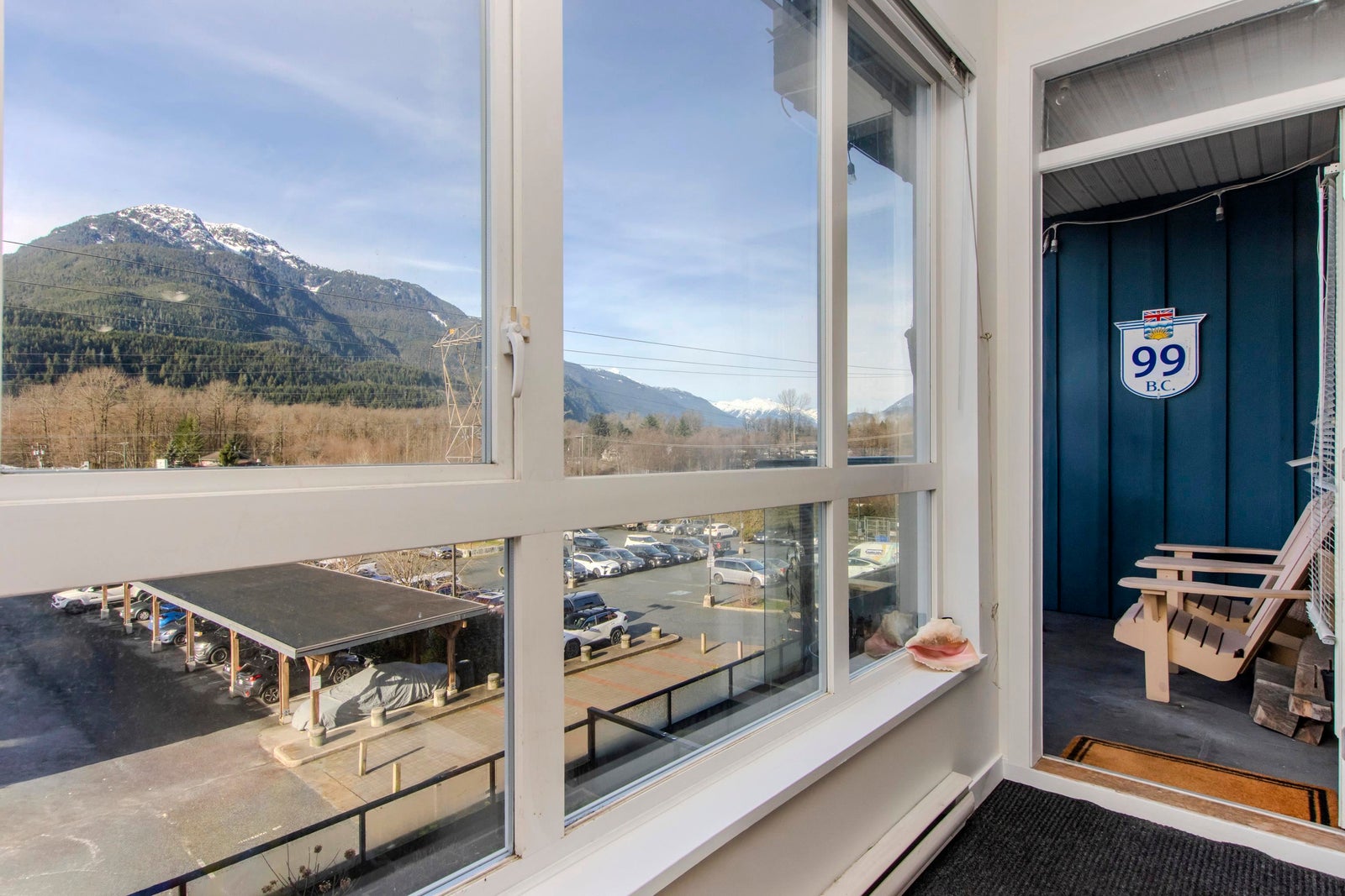 Centrally located in the Spectacle building, this west-facing 2-bedroom condo offers solid value and everyday convenience in the heart of Squamish. The functional layout is bright and open, with views toward the Tantalus Range and reliable afternoon light. The primary bedroom includes a large walk-in closet, and a useful den/storage area off the front entry provides extra flexibility for gear or organization. Step outside and you’re within easy walking distance to grocery stores, cafés, restaurants (yes, good sushi), the post office, transit, parks, and trails. A practical choice for first-time buyers, investors, or anyone looking for comfortable, walkable living.